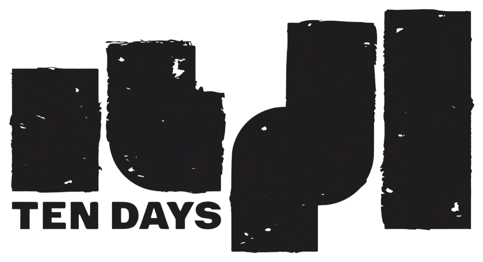 Text in black, grunge-style font that reads "TEN DAYS", on a white background.